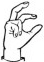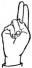 На ћирилици написано СРЕДОЈЕ РАКЕЗИЋ састоји се из 14 слова [?]. Исписано ћириличном једноручном азбуком за глувонеме:
